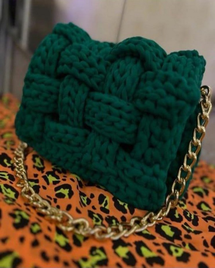 Kalın örgü tasarımlı, altın zincir askılı yeşil örgü kadın çanta, rahat bohem tarzı sunar. yeni sıfır üründür günlük kullanıma uygundur iade yoktur.