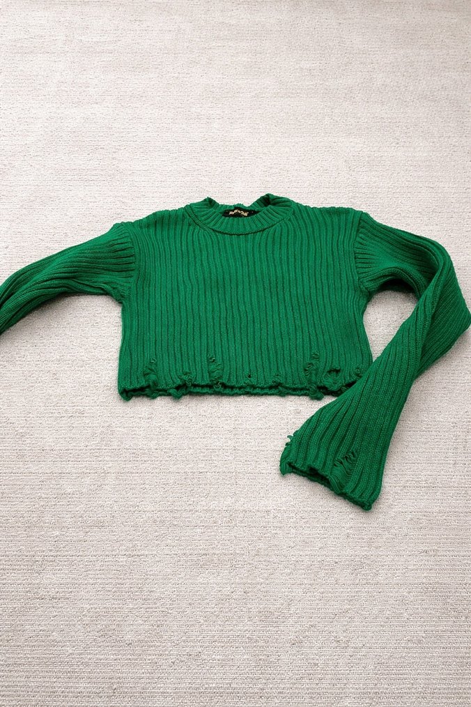Yeşil Örgü Crop Kazak