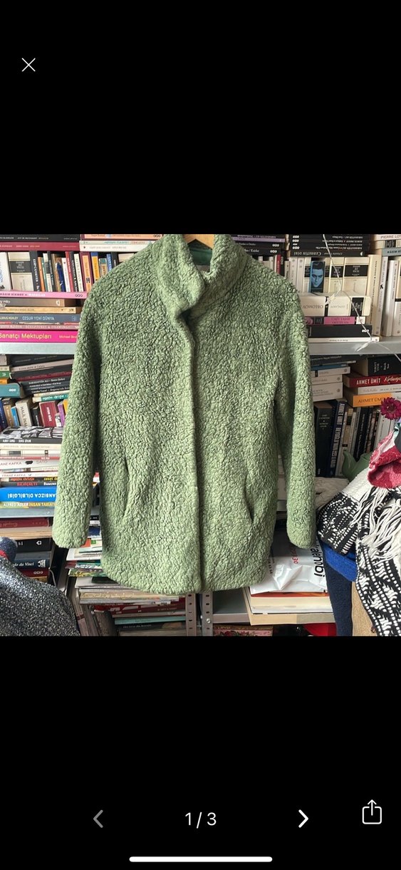 Yeşil Örgü Detaylı Kadın Polar Ceket