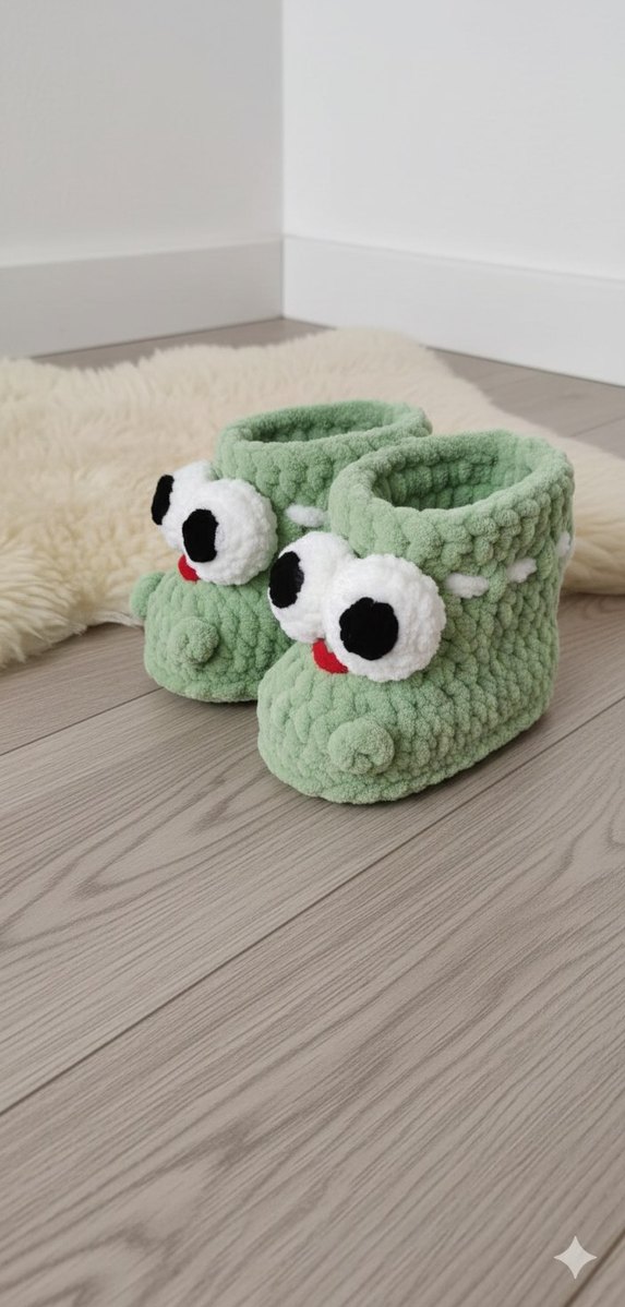 Yeşil Örgü Erkek Bebek Patik ev botu