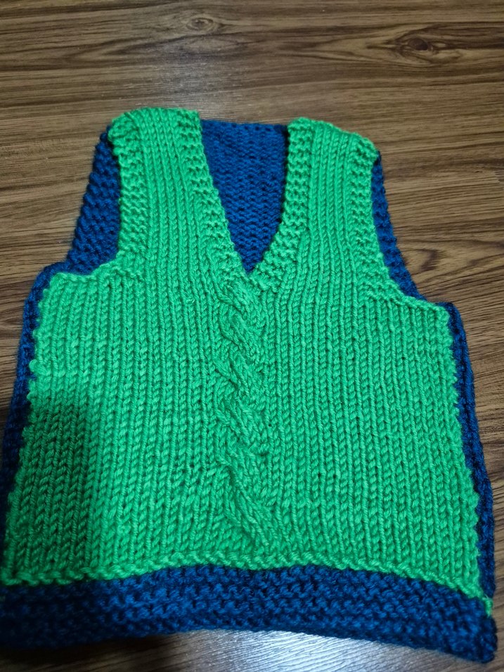 Yeşil renkli, balıkçı yaka, örgü erkek çocuk süveteri. Kolsuz ve sade tasarımıyla renkli ve rahat bir görünüm sunar. 1 yaşa göre