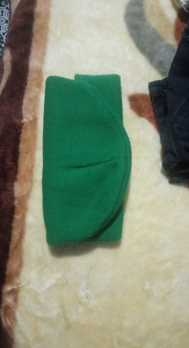 Yumuşak ve sıcak kumaştan örülmüş yeşil bere, rahat ve renkli bir görünüm sunar.