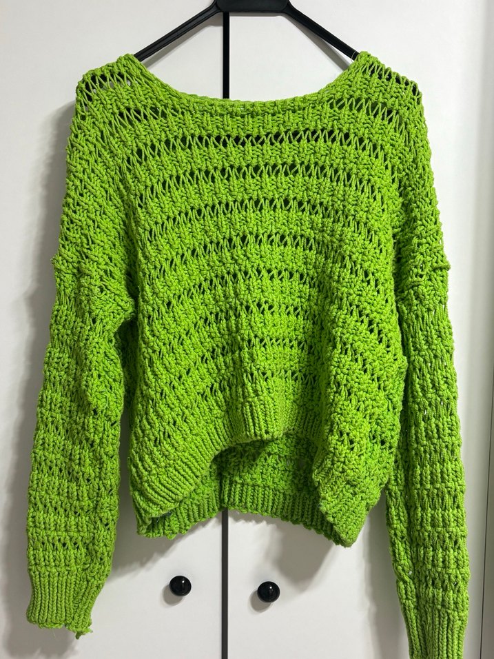 İki koltuk arası :56 cm Boy :57 cm Beden: Standart Fıstık Yeşili El Örgüsü Kazak Tarzınıza enerji katacak, yumuşacık dokulu ve modern kesim! • Beden: Standart (Oversize/Rahat kalıp) • Durum: Yeni / Tertemiz • Detay: Delikli örgü modeli ile hem şık hem ferah. Jean ve yüksek bel pantolonlarla harika kombinlenir.