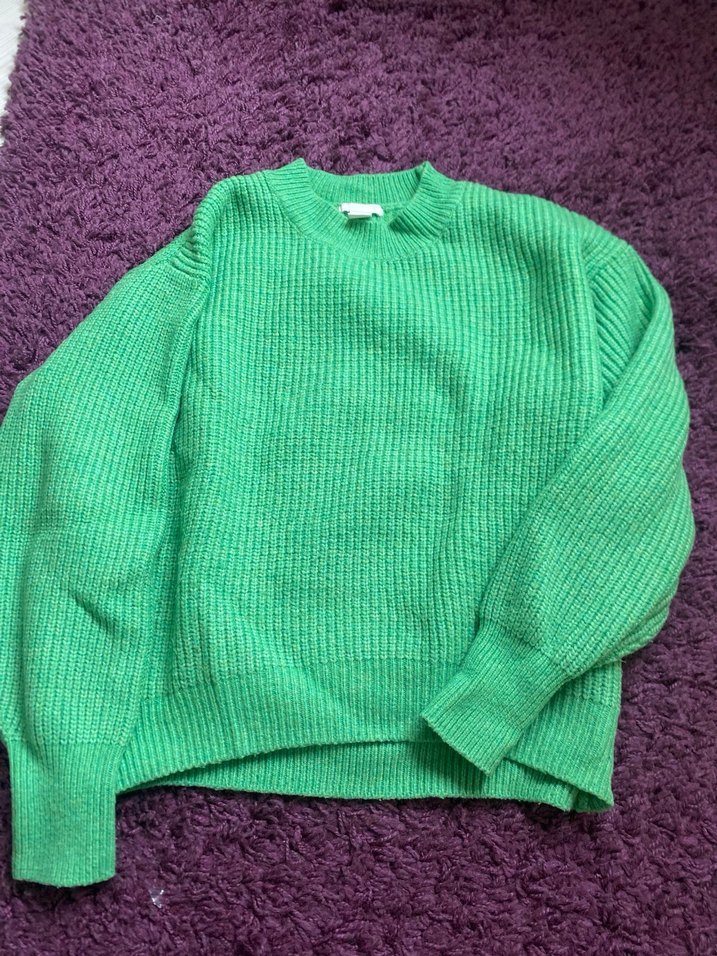 Bu yeşil örgü kazak, yuvarlak yaka ve uzun kollu, bol kesimiyle rahat ve konforlu bir günlük stil sunar.