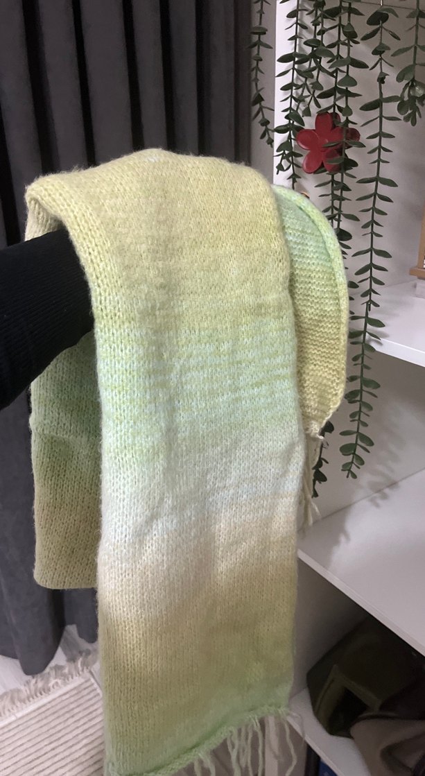 Yeşil renkli, yumuşak ve sıcak dokulu örgü kadın şalı, bohem tarzıyla trendsetterlar için uygun.