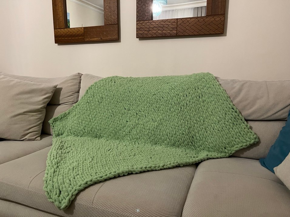 Yeşil renkte, yumuşak örgü kumaştan TV battaniyesi veya çocuk battaniyesi. Sade deseniyle her odaya uyum sağlar. Çocuk ve bebeklerin kullanımına uyumlu. 100*100 cm boyutunda.