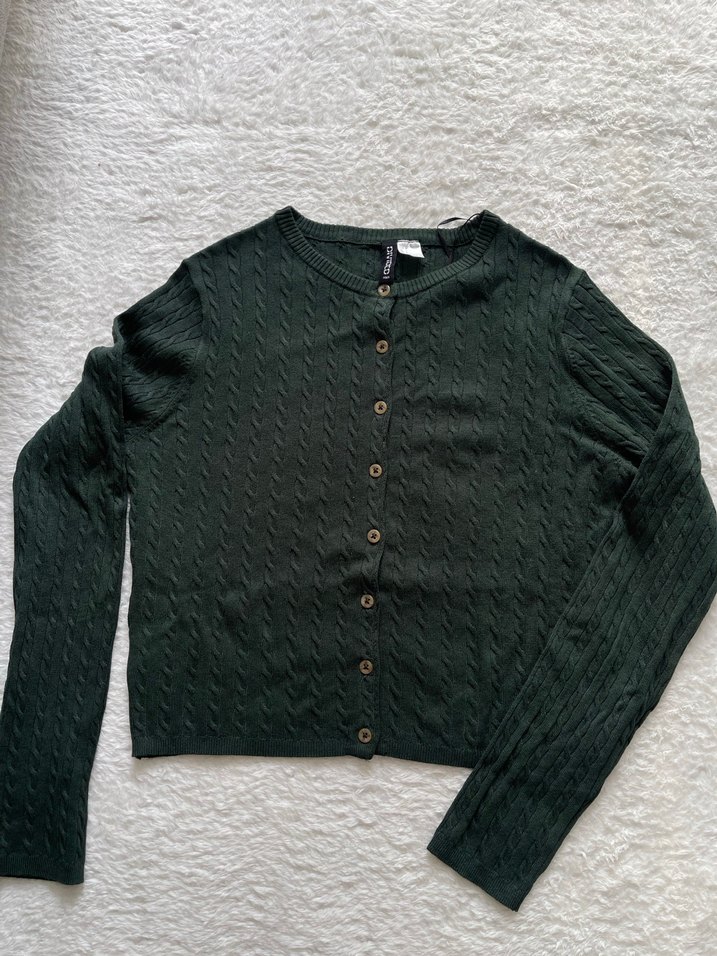 Bu yeşil, fitted hırka, yuvarlak yakalı ve uzun kolludur. Yumuşak örgü kumaştan üretilmiş olup, desensiz midi boyuyla rahat ve günlük kullanıma uygundur.