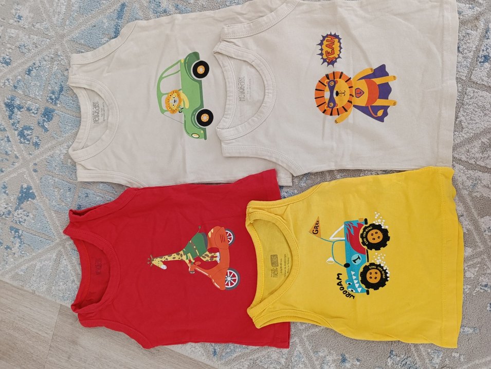 Gri tişört üzerinde yeşil oyuncak araba ve içinde bir aslan baskısı bulunur. Yumuşak kumaşı rahat kullanım sağlar.