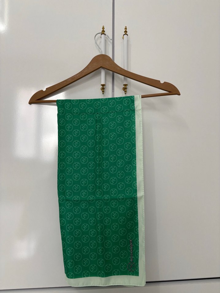 Yeşil renkte, parlak ve pamuklu dokulu kadın şal, drapeli tasarımıyla minimal ve bohem tarzlara uyum sağlar. Modakaşmir markası