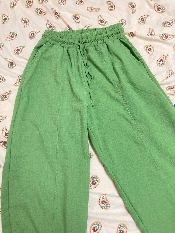 Yeşil Pamuklu Rahat Kesim Kadın Pantolon