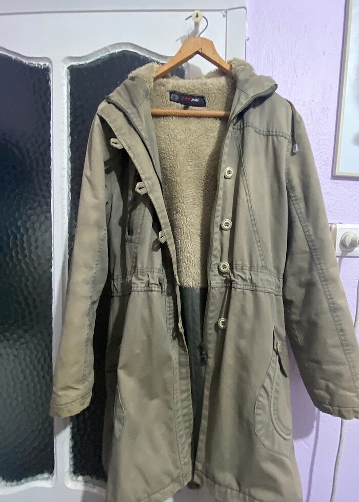 İçi polar sıcacık tutar. Kollarında kullanımdan dolayı ufak aşınmalar var fotoğraflarda belirttim. İki yandan cepleri var. Hem belden sıkmalı hem fermuarlı hem de düğmelidir. Marka temsili.