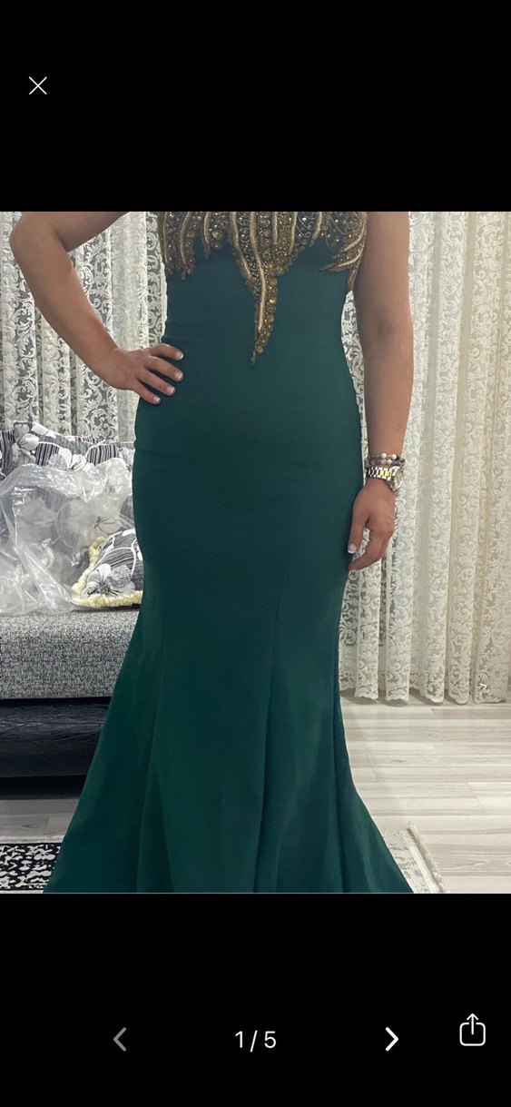 Yeşil Parlak Boncuk İşlemeli Uzun Abiye Elbise