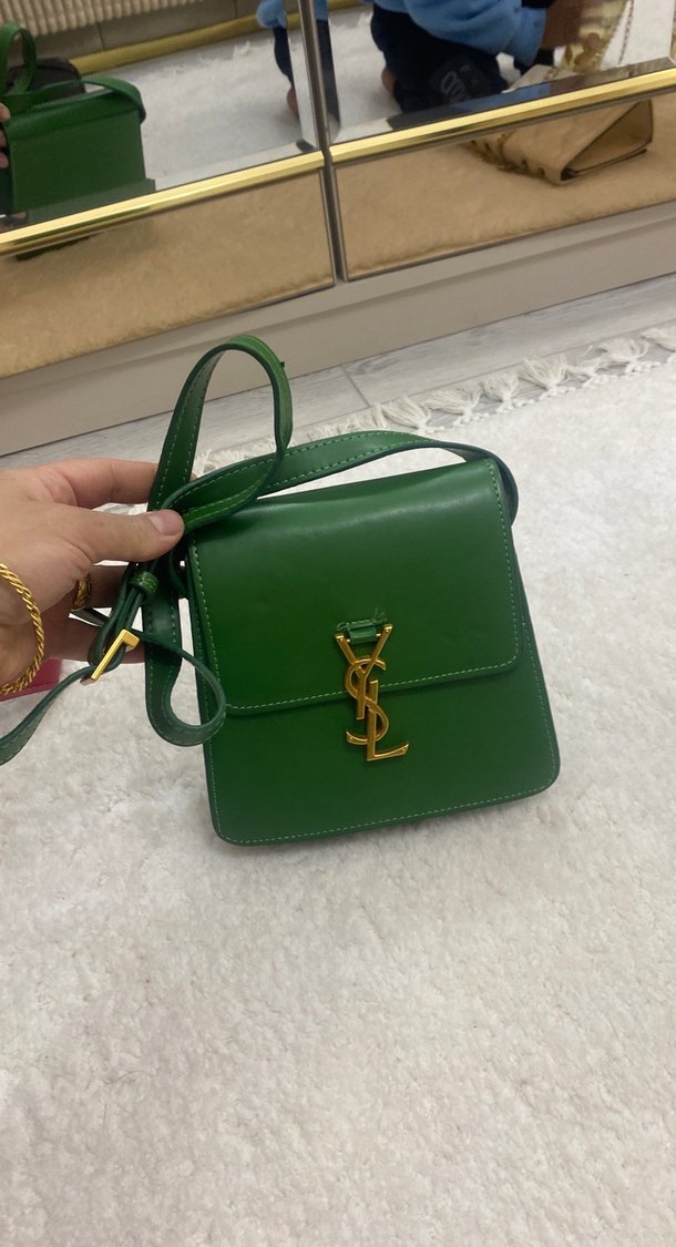 Parlak yeşil deri çanta, tokalı askı ve baskılı desene sahip. Cesur sokak stili için uygun, günlük kullanıma ideal.