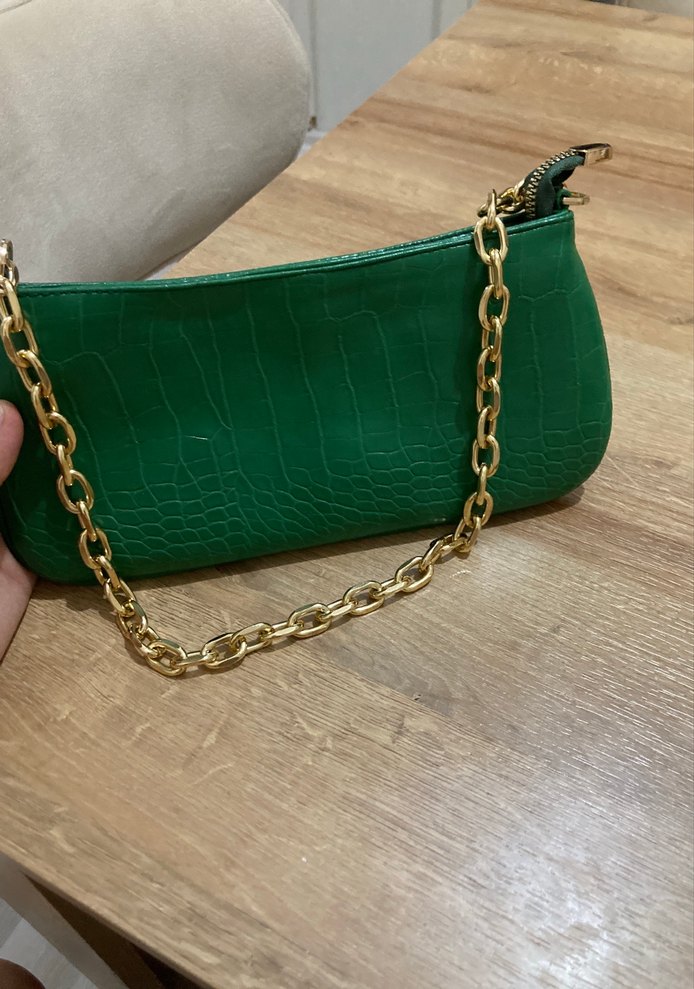 Yeşil Parlak Deri Zincir Detaylı Kadın Çanta