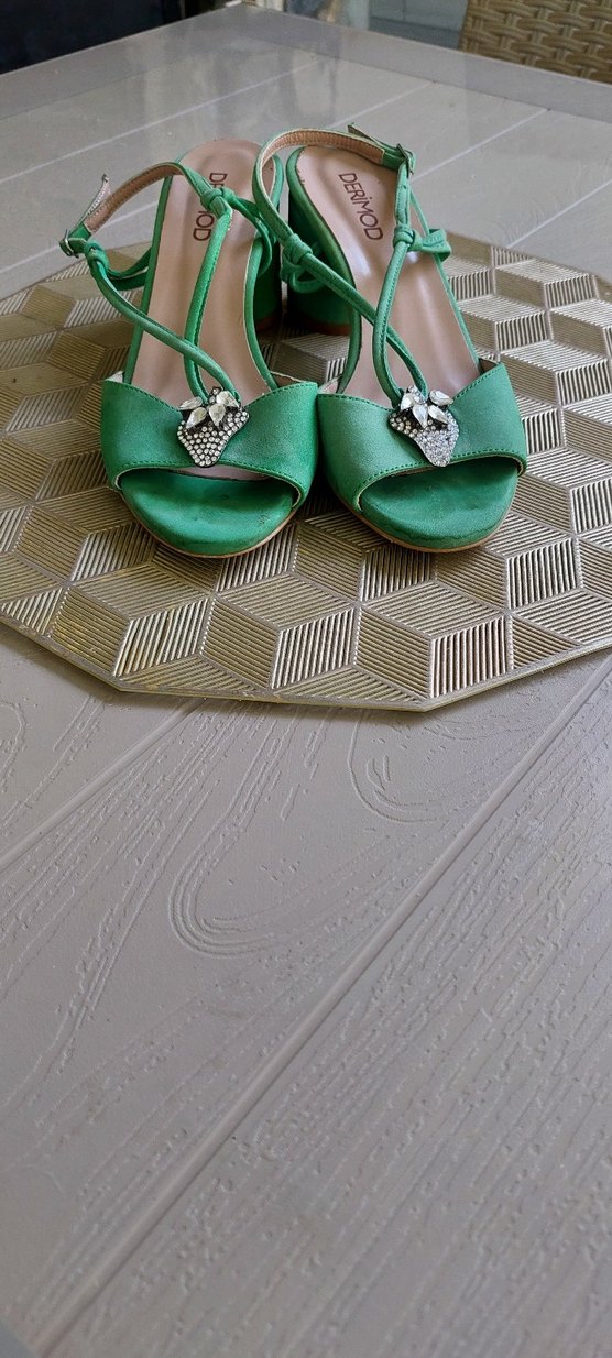 Yeşil Parlak Dolgu Topuklu Vintage Kadın Ayakkabı
