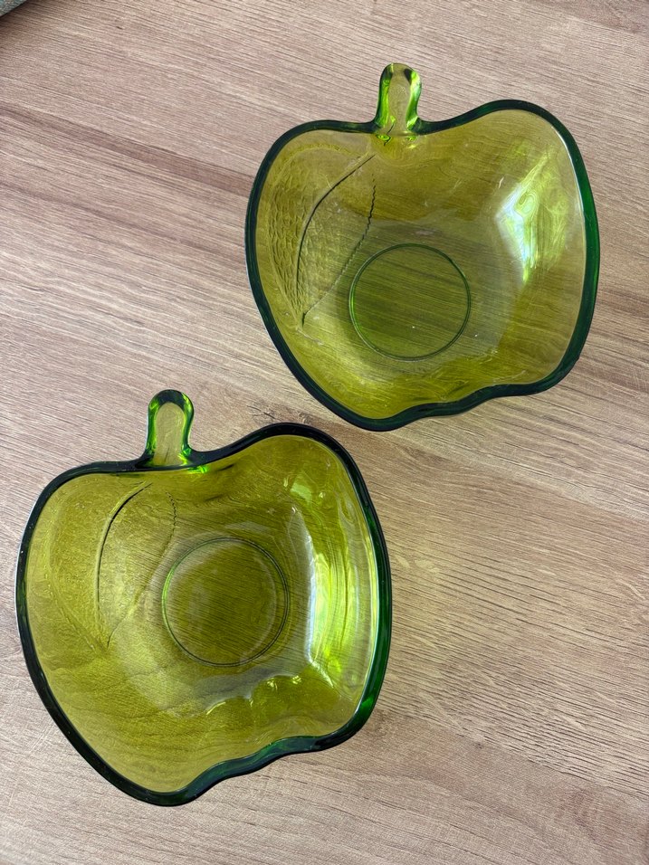 Parlak yeşil elma şeklinde, yaprak desenli tabaklar, sofra takımınıza farklı bir hava katıyor.