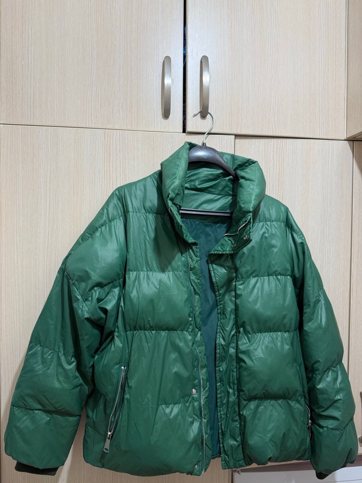 Yeşil parlak yüzeyli, fermuarlı cepleri olan bol kesim kışlık mont tertemizdir. İçinde büzme yeri mevcut biraz daha dar olarak da kullanabilirsiniz isterseniz. 42-44 bedene olur. Fazlalıktan dolayı satıyorum ve fiyatı uygun tutuyorum. Etiketini kestiğim için nerden aldığımı hatırlamıyorum