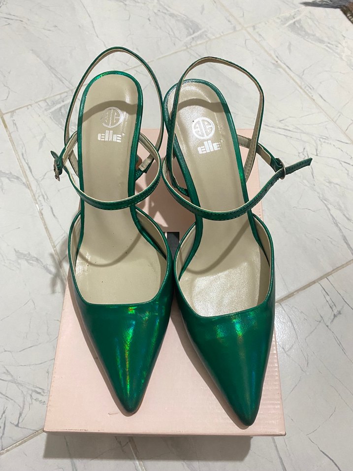 Yeşil parlak stiletto.