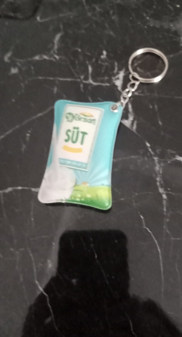 Parlak yeşil renkte, sütündıran ve "SÜT" yazılı çocuk anahtarlığı. Sokak tarzı, sade ve minimal tasarım sukuşi gibidir.