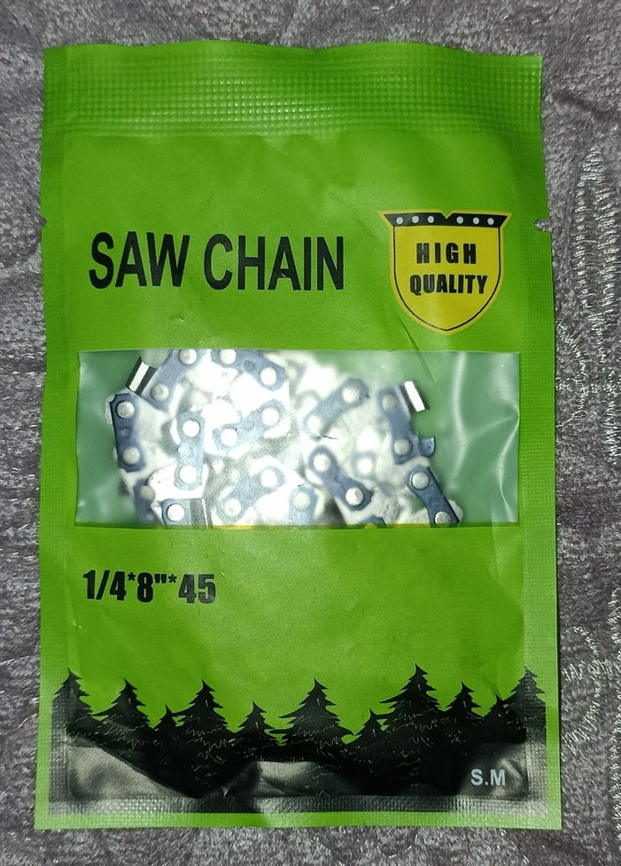 Parlak yeşil renkte, 1/4"8"45 ölçülerinde yüksek kaliteli testere zinciri.