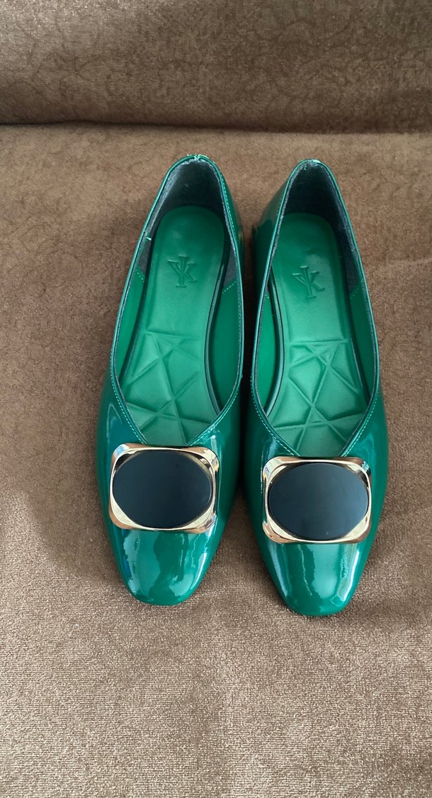 Yeşil Parlak Tokalı Kadın Düz Ayakkabı