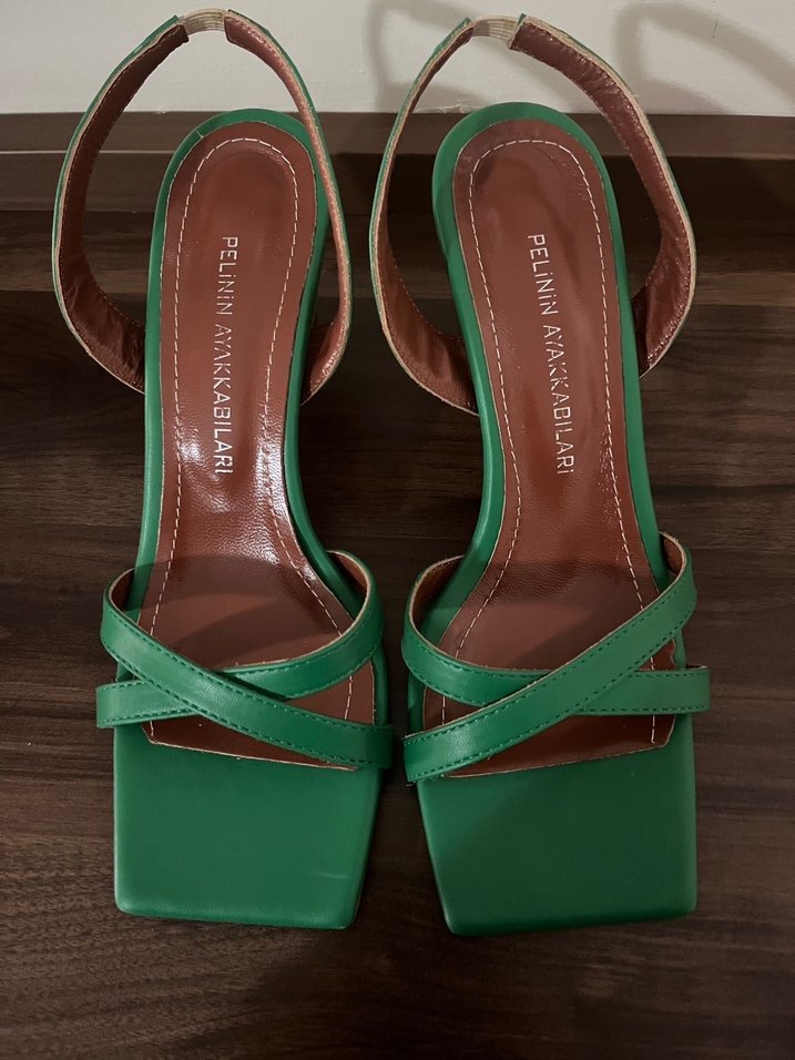 Yeşil Parlak Topuklu Kadın ayakkabı