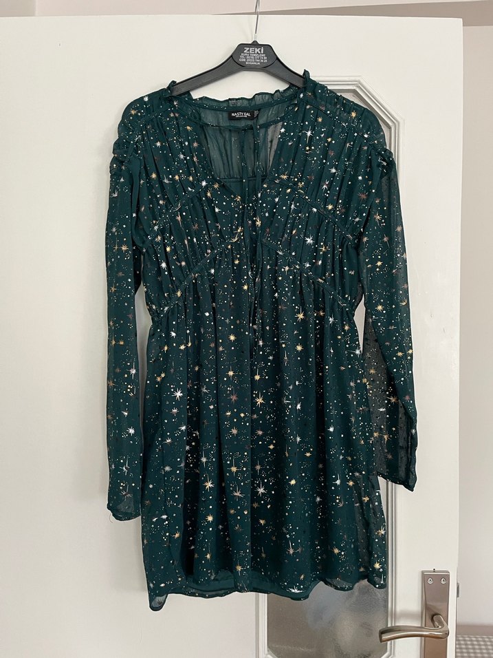 Yeşil Parlak Uzun Kollu Bohem Mini Elbise