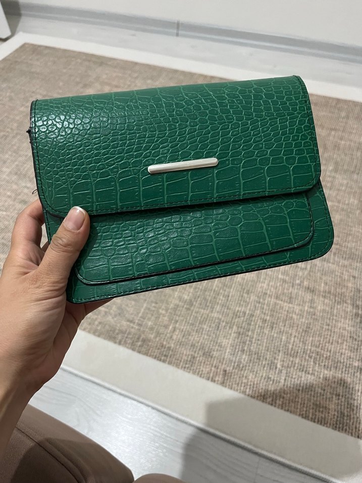 Yeşil Parlak Yılan Derisi Desenli Deri Kadın Çanta