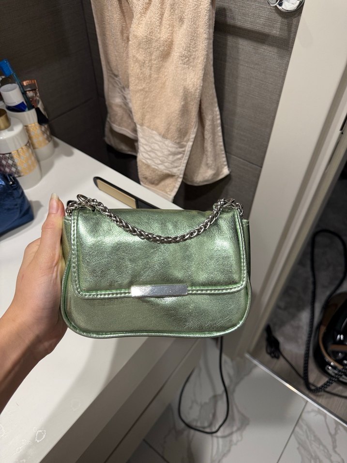 Yeşil Parlak Zincir Detaylı Deri Kadın Çanta