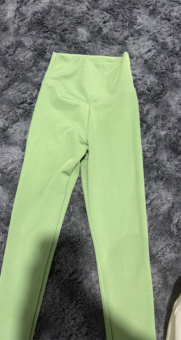 Bu pastel yeşil renkli kadın taytı, elastik bel bantları ve yumuşak sentetik kumaş ile üretilmiştir. Spor ve günlük kullanıma uygun sokak stili sunar. ♀️