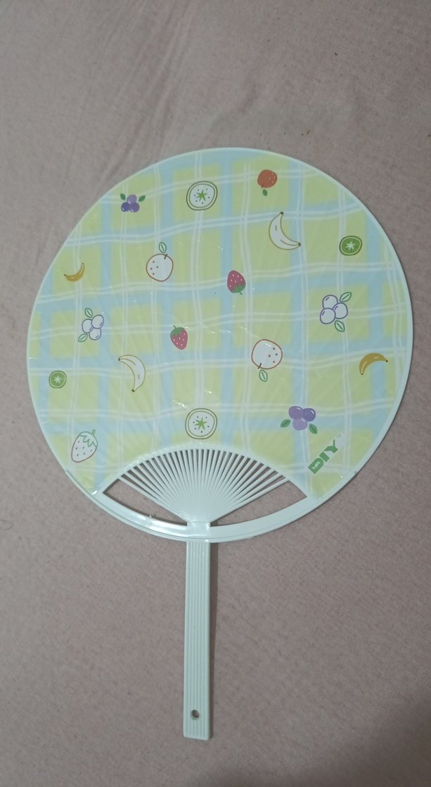 Pastel yeşil renkte, meyve desenli, hafif ve sade tasarımlı el yelpazesi normal yelpazelerden fazla hava verir. kore üsulu tatlı yelpaze
