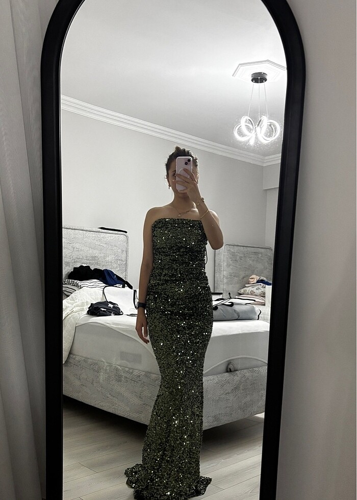 yesil payetli abiye