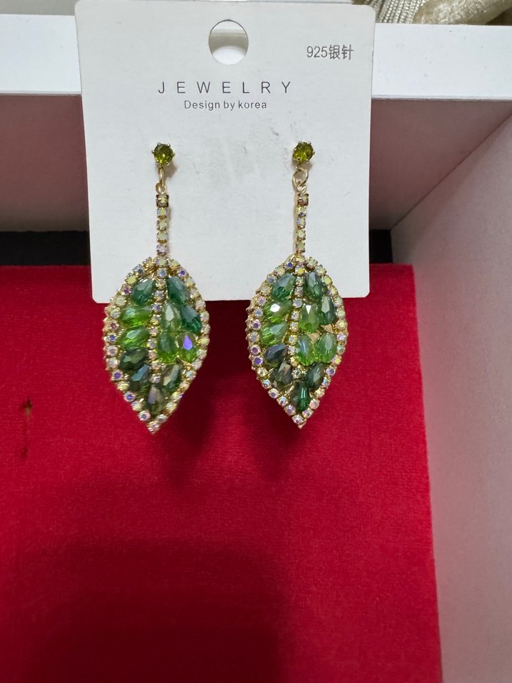 Yeşil payet ve işlemeli detaylara sahip kısa uzunlukta, bohem tarzda kadın küpeleri. Kore tasarımı. ✨