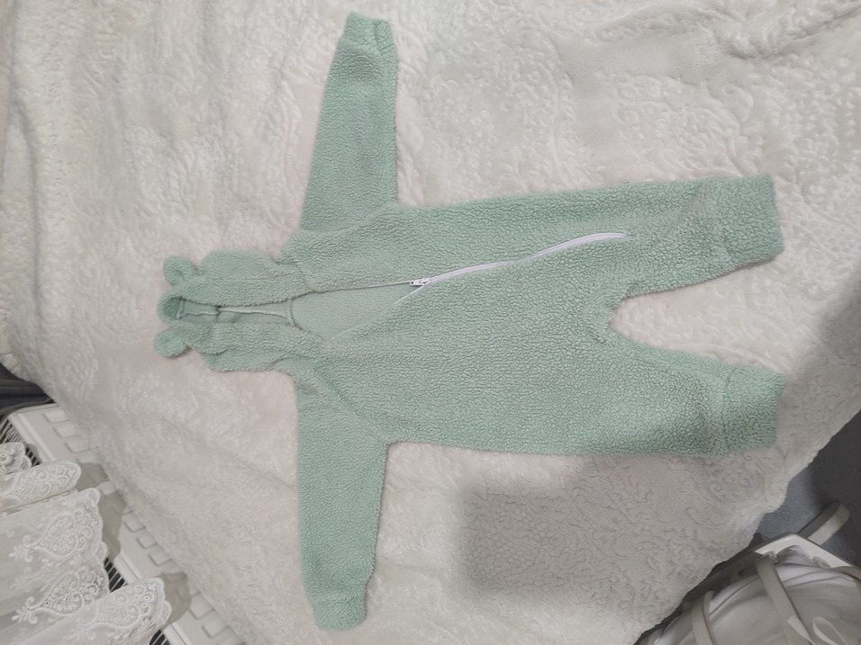 yeşil Peluş Bebek Tulumu Kapüşonlu