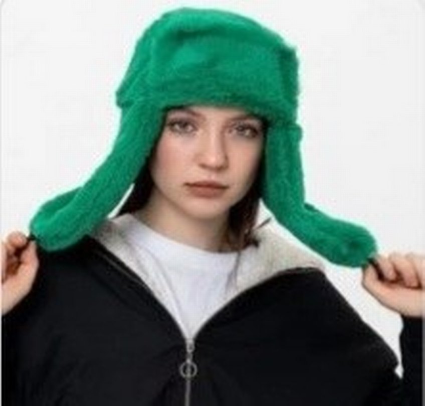 hiç kullanılmadı.Koyu yeşil, kürklü detaylara sahip kadın şapka. Sıcak ve rahat dokusuyla modaya uygun, avangart tarzda tasarlanmıştır.