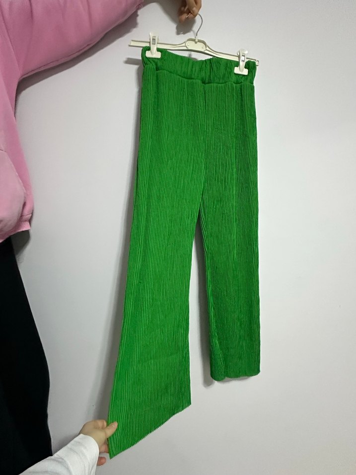 Yeşil Pileli Kadın uzun pantolon STANDART BEDEN