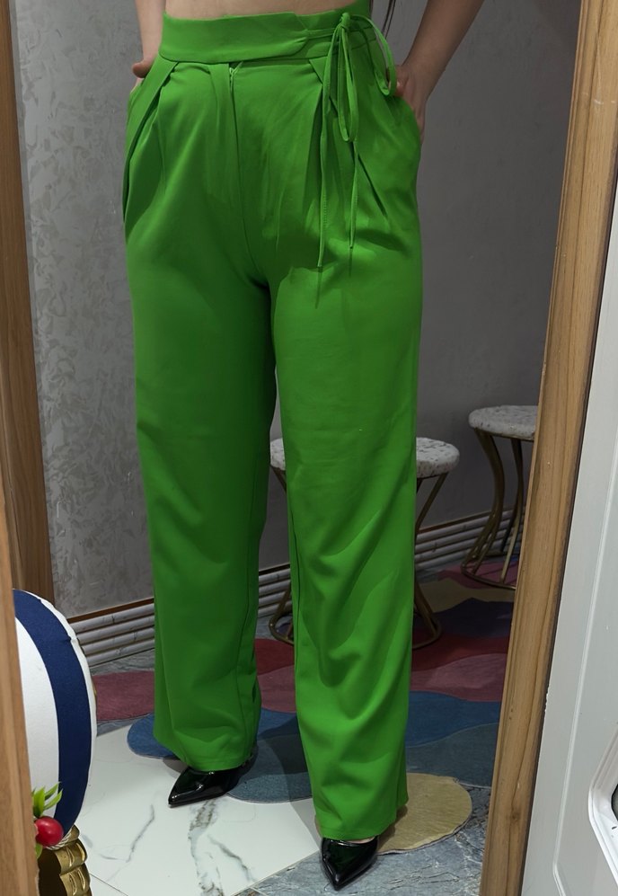 Yeşil, pilili, regular fit ve midi boy kumaş pantolon. Düz ve renkli, günlük sokak stiline uygun sentetik kumaş pantolon. Hiç kullanılmamış