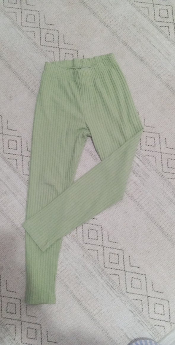 Yeşil renkli, pilili yumuşak pamuklu kumaş tayt günlük kullanıma uygun.