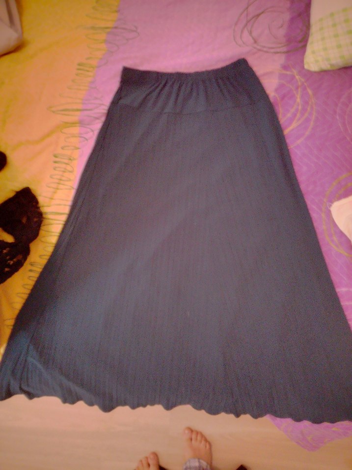 yeşil pilili ve sentetik kumaştan yapılmış, bohem parti tarzına uygun, dar kesim uzun etek.