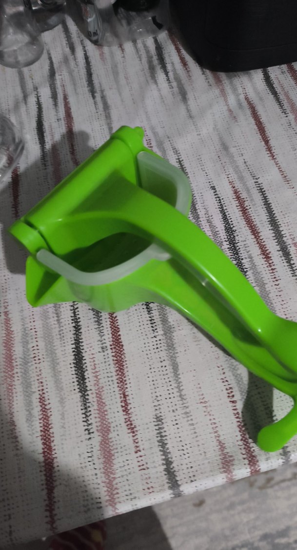 Yeşil renkte, plastik malzemeden yapılmış, sıkma işlemi için kullanılan mutfak aracı.