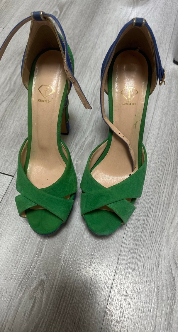 Parlak yılan desenli, tokalı yeşil platform topuklu kadın akşam ayakkabısı. Yumuşak süet malzemeden üretilmiştir, romantik buluşmalar için trend şık bir seçim.