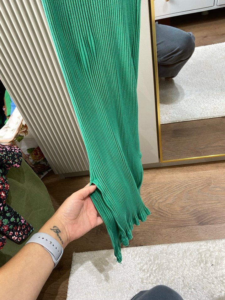 Yeşil Pliseli Kadın elbise