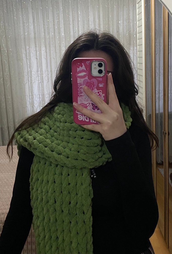 Yeşil Puffy Örgü Kadın atkı