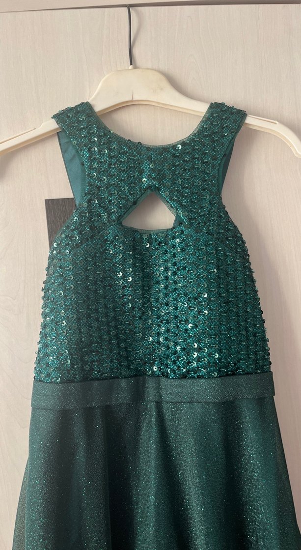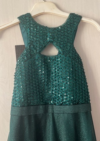 Yeşil pullu uzun Straplez Abiye Elbise