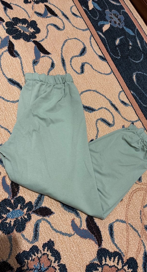 Yumuşak sentetik kumaştan, pastel tonlarda, rahat kesim ve midi boyda yeşil eşofman altı, günlük sokak stili için uygun.