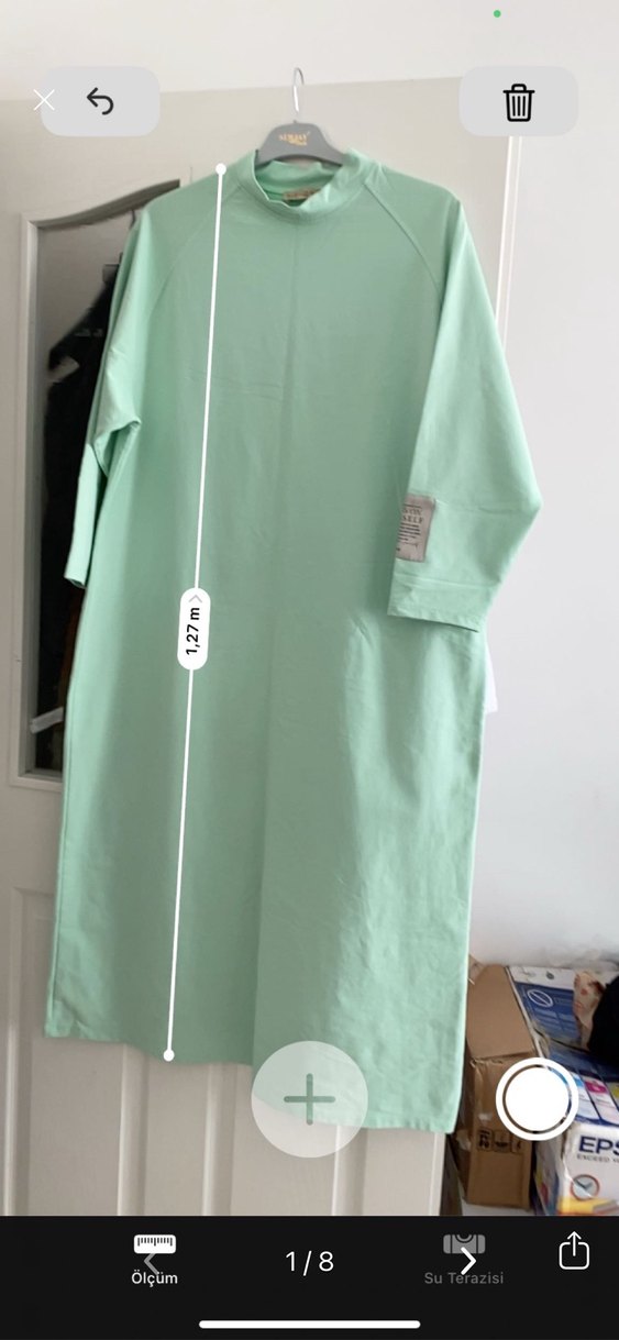 Pastel yeşil renkte, kısa kollu ve yuvarlak yakalı, rahat kesim midi boy emzirme geceliğidir. Desensiz sade tasarıma sahiptir. Sorunsuz