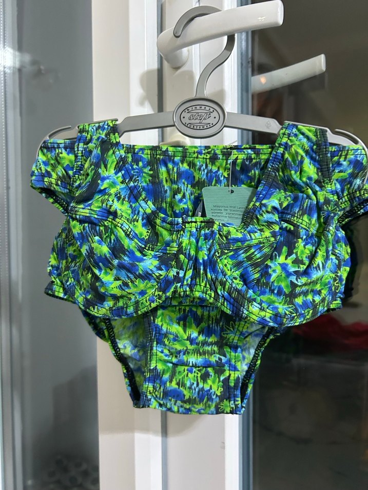 Yeşil Renkli Bağlama Desenli Fırfırlı Mini Mayo