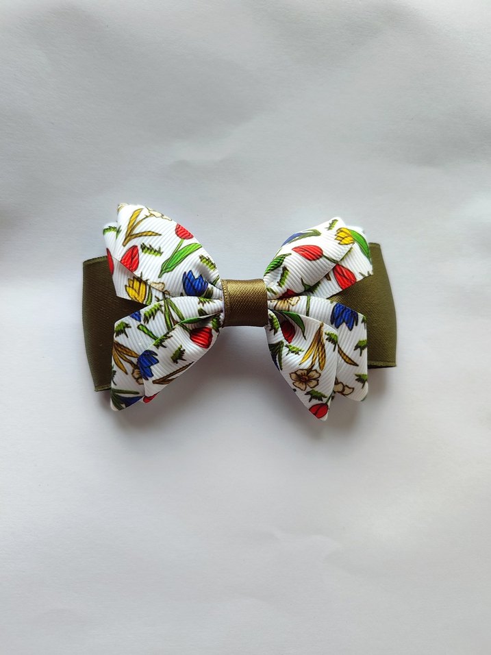Yeşil Renkli Çiçek desenli fiyonk toka