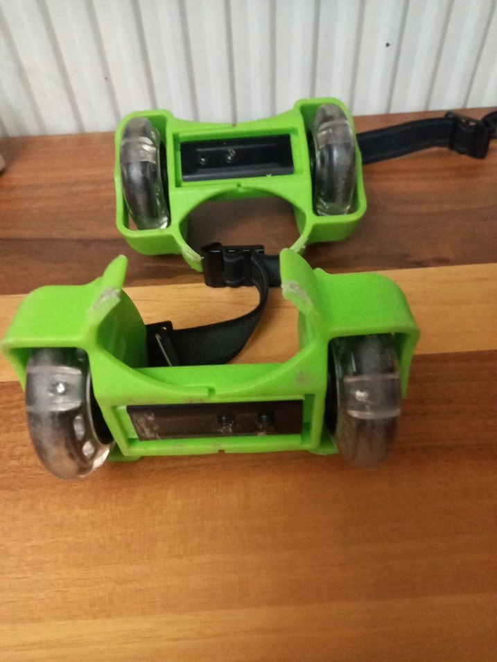 Çocuk scooter' tekerli ışıklı için yeşil renkli tekerlekler, sağlam yapılı ve kolay takma kayışlarına sahip.
