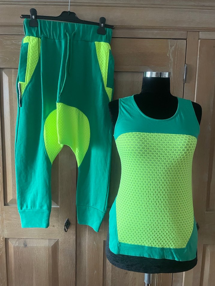Kadınlar için yeşil renkli, kolsuz ve askısız üst ile Velcro detaylı, bol kesim kısa pantolonlu spor takımı. Streetwear ve spor için uygun. ♀️ üst iki kol arası 40 santim boy 60 santim alt bel 70 santim boy 85 santim